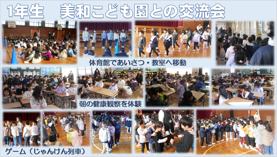 今日の2時間目に、1年生が美和こども園の年長児と交流会を行いました。