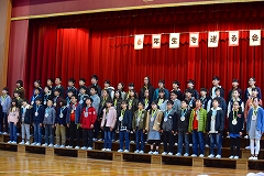 在校生から、感謝の気持ちや激励の気持ちを込めて、歌や メッセージが送られました。その気持ちを受けた6年生は、1人1 人のさまざまな思いを、最高学年にふさわしい歌声にのせて在校 生に届けました。