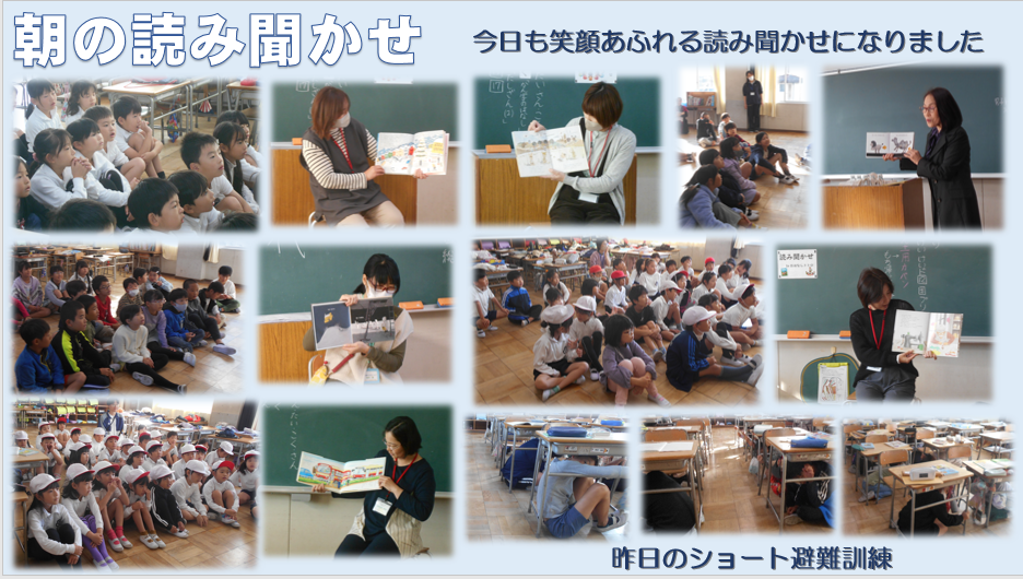 今日は、朝の読み聞かせがありました。どれも楽しいお話ばかりで笑い声が聞こえたり、静まりかえって集中して聞く姿がありました。いつもありがとうございます。