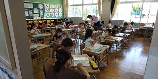 廊下や昇降口には、学級目標やあいさつの励行の呼びかけ、委員会からのお願い等が掲示され、その一枚一枚には、「一人一人の自主・自立」という願いが込められています。授業も順調に進んでいます。低学年や在籍児童数が多い3年生等には、