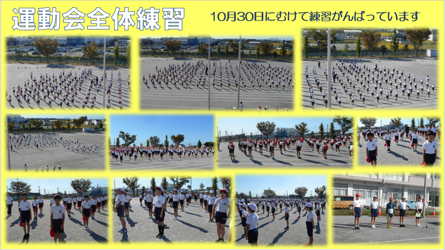 先週の金曜日1時間目に、全校での運動会練習がありました。入退場や開会式、閉会式の練習でした。はじめて全校でそろった練習でしたが、自分たちの動きや立ち位置などを覚えながらスムーズに行動することができました。