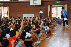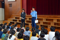 前半の防犯避難訓練、後半の防犯教室。児童の安全、