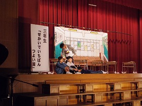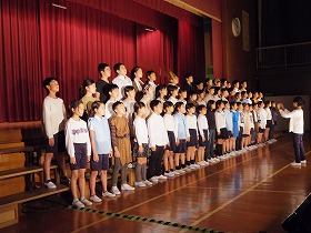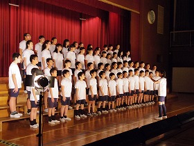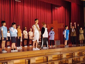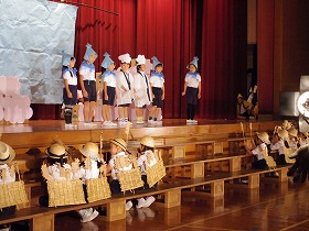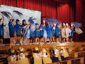 運動会が終わってから約1ヶ月半。子どもたちは、今日の日をめざして一生懸命に練習を重ねてきました。火曜日には、校内発表会として総練習をし、金曜日には、本番通りの通し練習をし、この日を迎えました。総練習の後には、「緊張した!」と口々に言っていた子どもたちですが、自分の演技をふり返り、上級生の姿から多くのことを学び、本番ではいずれの学年も最高の演技を披露してくれました。そんな子どもたちの真剣な演技は、見るものを心をひきつけ、感動を呼びました。