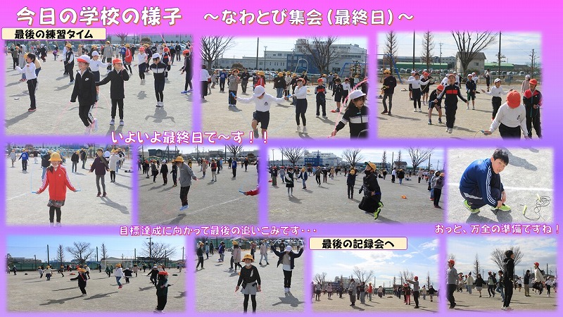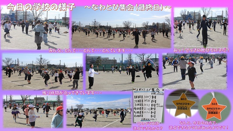 を設定して、今日まで取り組んできました。休み時間に練習したり、体育の時間にも練習したり、