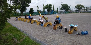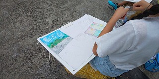 〈皆、思い思いの場所に陣取り・・・〉 〈実物をよく見て、配色を考える〉
