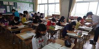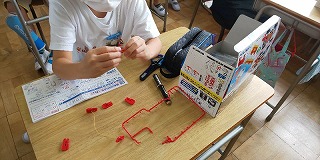 6年1組では、算数の復習問題に取り組んでいました。黒板には、一つ目の課題ができたら次課題に取り組むよう指示があり、皆、個々のペースで学習を積み上げていました。3年1組では、理科「電流のはたらき」の授業で、学習教材の組み立てをしていました。百聞は一見に如かず、実際に電流を流してみることで理解は大きく深まります。高価な教材ですので、有効に使っていきたいと思います。