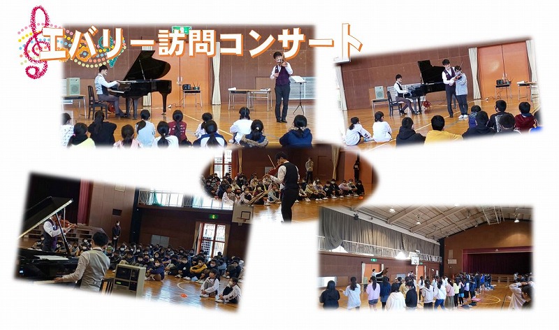 音の「楽しみ」を追求し、伝え続けることをモットーとし、エンターテインメント性の高いコンサートを全国各地で行っているエバリーの皆さん。小学校や幼稚園、保育園への訪問コンサートは毎年1000公演を超え、年間15万人以上の子どもたちに生の音楽を届けてくださっています。今年も松尾兄弟のお二人をお招きすることができました。「音楽の親しさを改めて感じてもらう」と共に、楽しかった学校等でのコンサートを家族と共有し、「コンサートホールに家族で出かける」という文化的習慣の普及を目指すこのコンサートは、聴くだけではなく、身体を動かしたり、楽器体験をしたりする参加型の素敵なものでした。