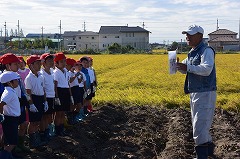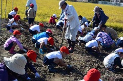 1年生が、長ぐつ・軍手の装備万端で、畑に登場。