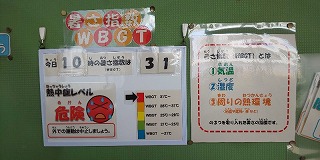 〈外の活動を行う運動場で測定して安全管理〉 〈10時ですでに「厳重警戒」レベルに!〉