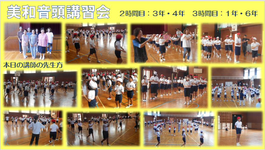 今日の2時間目と3時間目に、美和音頭の講習会を行いました。運動会で表現運動として行うので、その練習です。毎年行ってきているので、高学年になるほど音楽がかかると自然に体が動くようです。運動会当日が楽しみになりました。