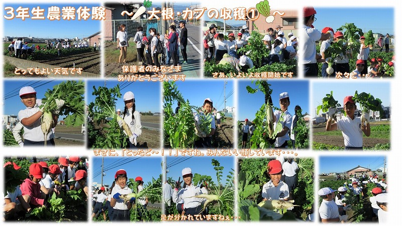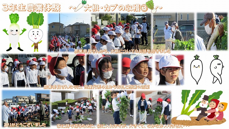 3年生農業体験(大根・カブの収穫)+お礼と感謝の言葉