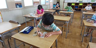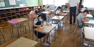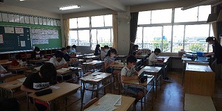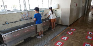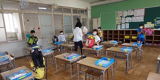登校後、子どもたちはきちんと手洗いを済ませ、荷物の整理と給水をして授業に備えています。暑さに体が慣れていないことやマスクを着用していることを考慮し、担任は給水をするよう促すように努めています。