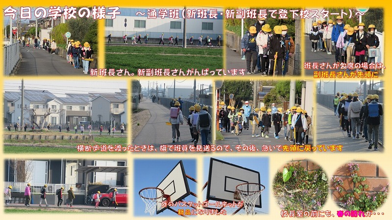 。今までの登校は、班と班の間が離れていることが多かったのですが、昨日、今日の様子を見ていると、もちろん、各班ごとに集合時刻は違うのですが、