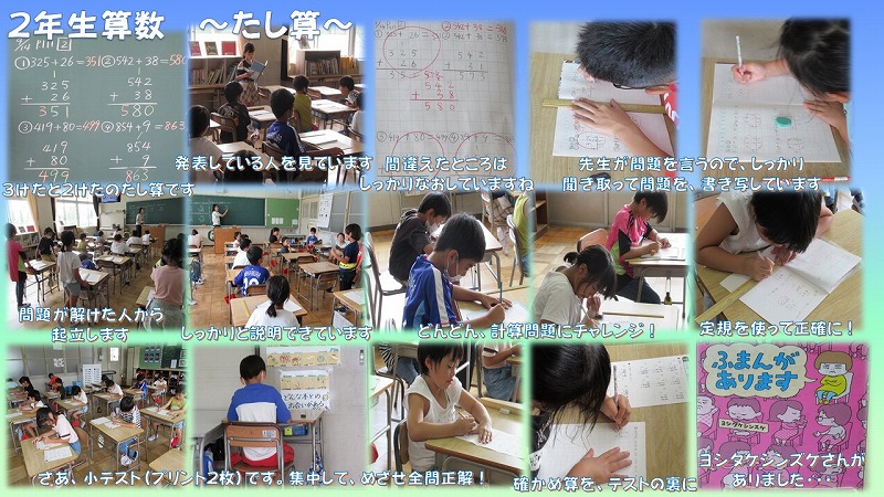と、「たし算」の問題を一生懸命集中して行っていました。先生から言われたたし算の式を、