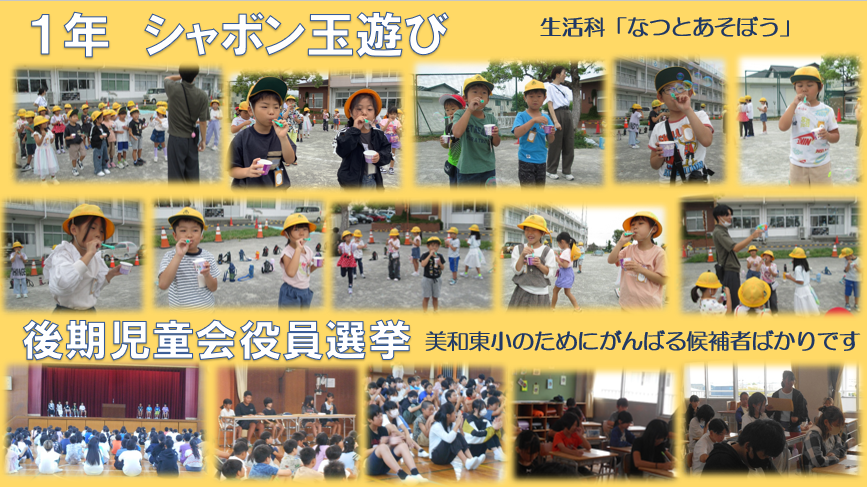 1年シャボン玉遊び・後期児童会役員選挙