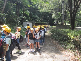 昼食を終え、爽やかな五月晴れの下、ハイキングをしました。「想像していたより道が険しかった」や、「色々な生き物を見つけた」など、どの子も多くの発見をしていました。