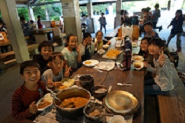 いよいよ飯ごう炊飯が始まりました。美味しいカレーを作るために、それぞれの係に分かれ、協力し合っている姿が印象的でした。