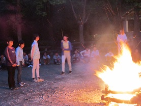 一日の最後にキャンプファイヤーをしました。各クラスとキャンプカウンセラーの出し物で盛り上がりました。