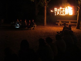 学年目標の「一致団結」の火文字。感動に包まれました。
