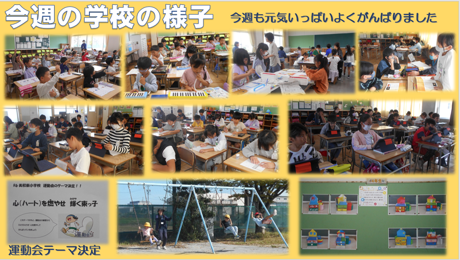 今週も、学校内の子どもたちは元気いっぱいがんばりました。しかし、朝晩と日中の気温差が激しいので、発熱したり体調をくずしたりする子も見られました。しっかり休息を取り、また元気に学校に登校してくださいね。