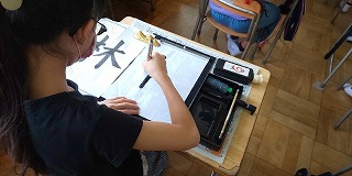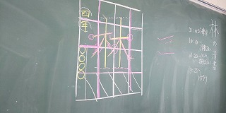 学習シートを工夫したりしていました。4年生の書写では、「林」と言う文字を毛筆で書いていました。担当は教頭先生で、