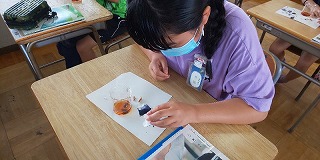 デンプンがヨウ素液に反応する様子を見て、子どもたちは