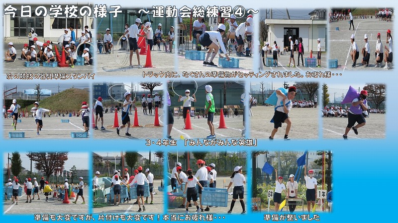 を行うために、運動場を走り回って、他の学年の競技のためにも、