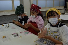 フラワー、まんじゅう、木工、ラスク。4つの教室で、体験を行いました。