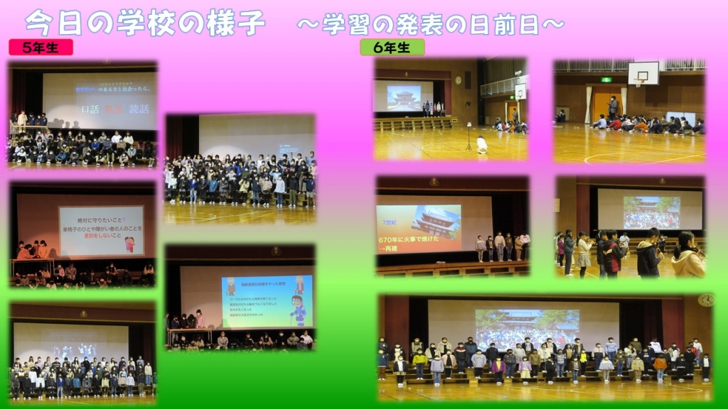 学習の発表の日に向けて(各学年前日練習)