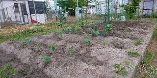 校内を歩いていますと、学校園には理科の観察で使うキャベツが虫食い状態で元気に育っています。もちろんアオムシを観察するためのものですので、穴だらけは当たり前ですが・・・・。他にもキュウリやミニトマト等、理科や生活科の教材として使える野菜がすくすくと育ってきています。