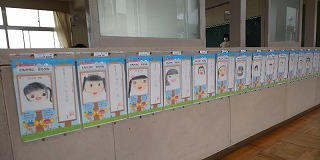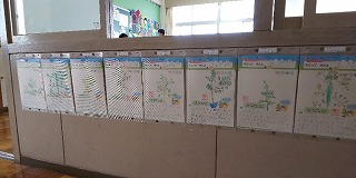 2年生の教室には、「ミニトマトの観察記録」が掲示され、1年生の教室には、ひらがなの学習を兼ねた「自己紹介カード」が掲示されています。少しずつ学習が進んでおり、いつもの学校の姿を取り戻しつつあるように感じます。