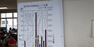 4年生の教室では、電子黒板を駆使して、辞書の使い方をわかりやすく説明し、廊下には、拡大印刷機を活用して金沢市の「月別気温と降水量」を掲示し、学習の定着に役立てようと工夫しています。(あま市が揃えてくださったICT機器を有効に活用しています。)