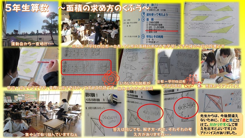 と公式にしたがって、面積を求める練習をしてきています。今日は「