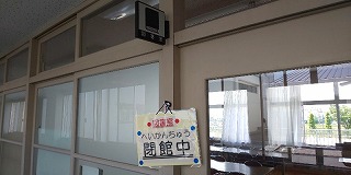 〈手洗いの習慣が徹底するまで閉館中の図書室〉 〈トイレも混雑を避けながら利用〉