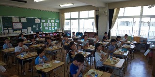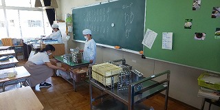 -スリッパの整頓が完璧なのはうれしい!(5年生)- 給食は少しずつ平常に戻りつつあります。3密を避けるための約束を少しずつ徹底させ、今週は、1品増えました。手洗いと消毒の後、数名ずつ配膳の列に並び、お互いの間隔もできるだけあけるように指導しています。前向きで会話を控えた会食は寂しいですが、これも新しい生活様式として慣れるしかないかもしれません。