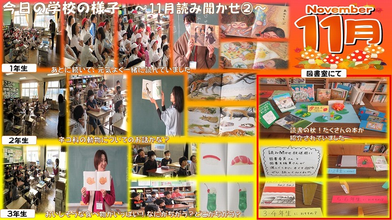 がいっぱいでてきたり、どの学年も読み聞かせの時間を