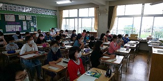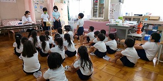 週初め、ぐずついた天候で集中力を失いがちな日ですが、相変わらず子どもたちは落ち着いて学習に取り組んでいます。1年1組では外国語活動の授業にALTが来校し、英語の歌を皆で楽しく歌っていました。マスク越しではありますが、笑顔で歌っている姿は見ていてうれしくなります。4年2組では、体育「ソフトバレーボール」の授業で、アンダーハンドパスを何回連続でできるかに挑戦していました。ペアでそれぞれの課題を確認し、解決策を探らせるようにしていました。6年1組では、算数「分数の割り算」の学習を進めており、逆数を使う難しい内容でしたが、既習の知識をしっかりと使って、確実に解いていました。