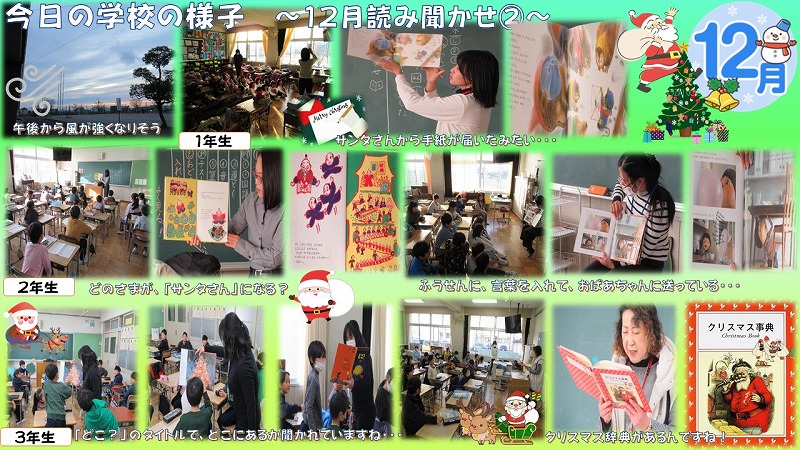 を用意して、読み聞かせを行っていただいたクラスが多かったようです。クリスマスにも、
