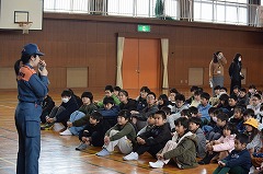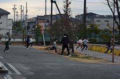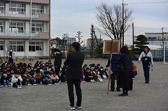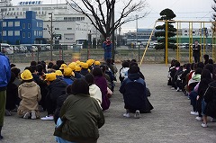 緊急地震速報音にすばやく対応し、運動場に避難。