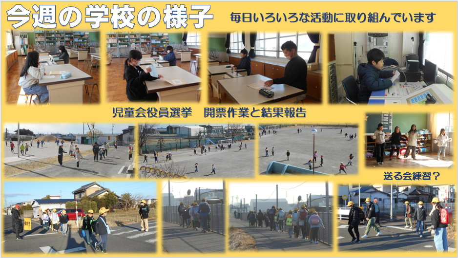 今週の学校の様子です。昨日、児童会役員選挙があり、選挙管理委員が開票作業を行い、今日、開票結果を放送しました。選挙管理委員の皆さん、おつかれさまでした。