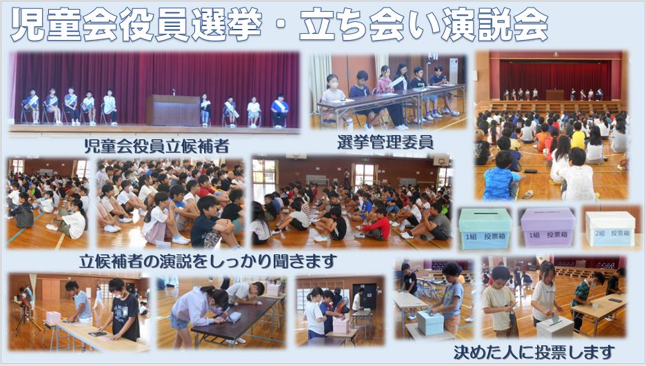 今日の1時間目に、後期児童会役員選挙がありました。立ち会い演説会では、立候補者が、美和東小学校をよりよくするために取り組みたいこと(公約)を演説しました。4~6年生が演説を聞き、一票を投じました。演説する様子や聞く態度がとてもすばらしく、学校のために活動できたり協力できたりする子ばかりだと思いました。さすが高学年です。このあと選挙管理委員が開票作業を行い、明日結果が発表されます。