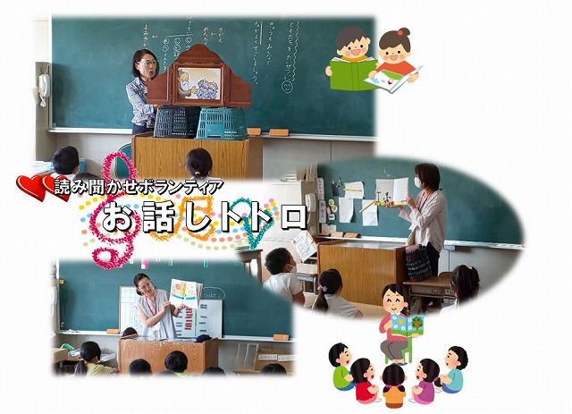 子どもたちが楽しみにしている読み聞かせの日です。この日は、紙芝居舞台(木枠)をひとつ持参してくださり、1年2組の子たちの前で読み聞かせをしてくださいました。本格的な紙芝居に、子どもたちはいつもにも増して目を輝かせていました。他の学級では、普段通りの読み聞かせでしたが、楽しそうに聞き入る子どもたちの姿を見るにつけ、お話しトトロの皆様に感謝の思いでいっぱいです。