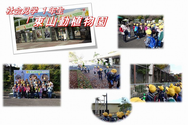 1年生は生活科で「生きものだいすき」の学習と「あきとなかよし」の学習に取り組んでいます。コロナ禍で生きものとふれあうことも自粛せざるを得ないところはありますが、社会見学で「東山動植物園」を訪ね、飼育をして見える方々のお話を聞いたり、日頃は見ることができない生きものの秘密を見せていただいたりすることで、学習の深まりを期待しました。また、落ち葉や木の実など、秋になると様々なものが公園や神社に落ちてきます。そんな自然物を工夫して生活に役立つものや遊びに使えるものを作る学習をするため、せっかく訪れる東山で拾ってきたいと計画しました。 11月下旬とは思えない暖かい日で、楽しく学び、遊んだ素敵なひと時を過ごしました。
