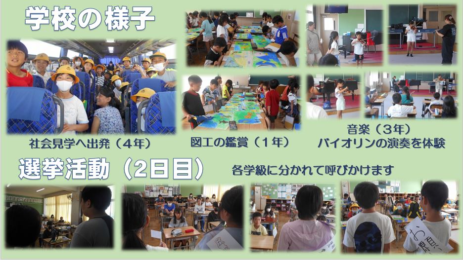 また、選挙活動2日目です。誰に1票投票するか考えながら立候補者の演説を真剣に聞いていました。さすが高学年ですね。