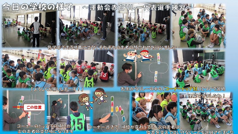 運動会(赤白リレー代表選手集合・コーナートップ制について))