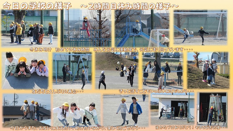 になると、冬休み前と同じように、元気よく子どもたちが走って運動場に出てきました。