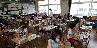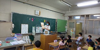読み聞かせボランティア「お話しトトロ」の皆さんによる『読み聞かせ』も再開しました。児童同士および読み手との間隔を確保し、皆、マスク着用での再開です。子どもたちがとても楽しみにしている企画であり、読書への関心を高める上で大きな意義をもっていますので、これからも続けていきます。