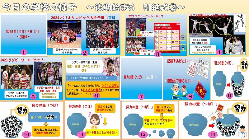 、という思いが一人一人から伝わってきました。これからは、後期の児童会役員さんが、その思いを受け継いでいくことと思います。