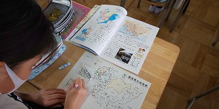 〈スクールサポーターの先生の支援を受けて-3年生〉 〈愛知県について白地図に整理!-4年生〉