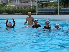 水に浮くポイントをしっかりと聞いて実践していました。